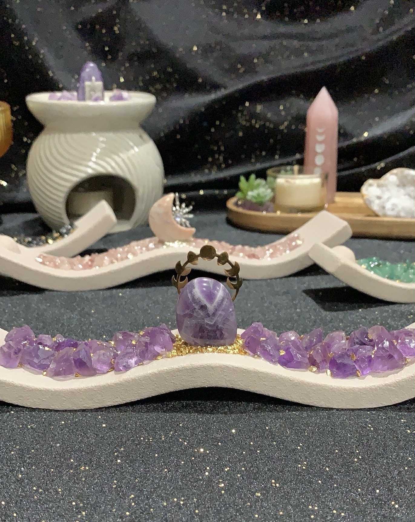 Elevate your space with our Crystal Wavy Incense Holders, each thoughtfully paired with carefully selected crystals known for their unique metaphysical properties. The elegant wavy design complements the natural beauty of the stones, creating a harmonious blend of form and intention. Perfect for enhancing meditation, relaxation, or simply adding a refined touch to your décor.